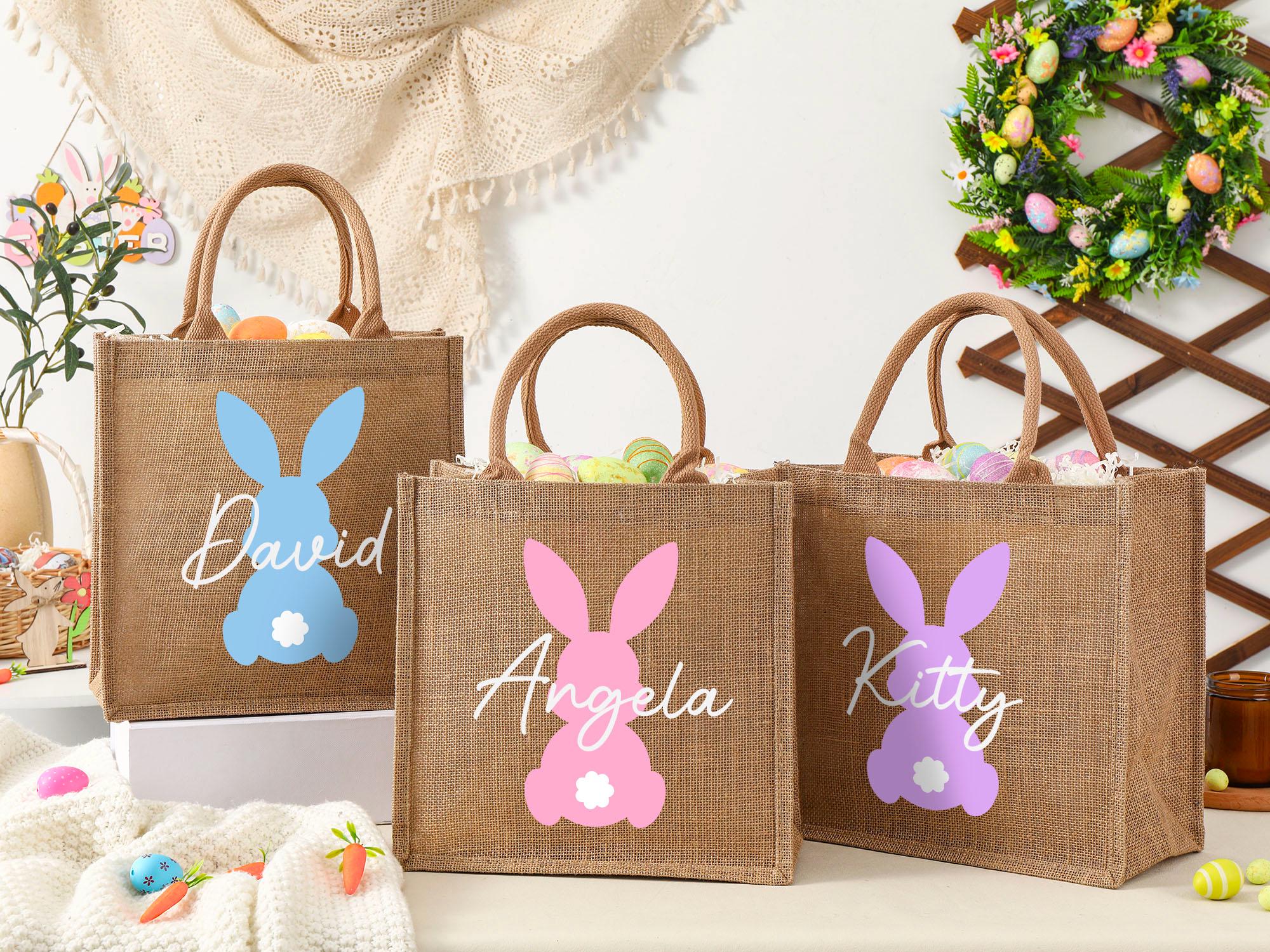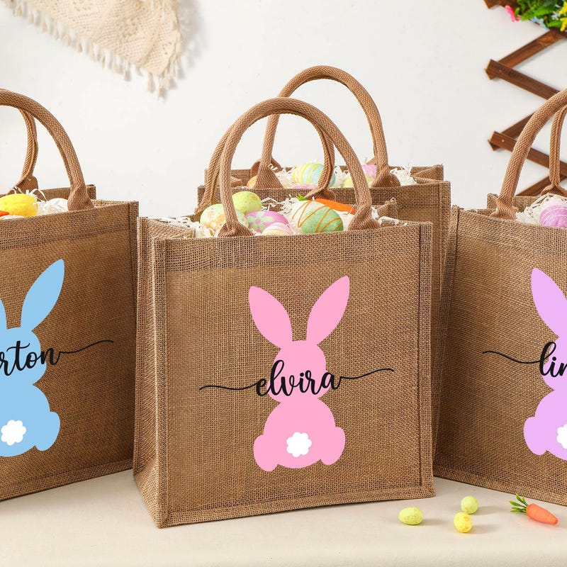 This Easter burlap bag is the perfect holiday gift, with a unique bunny design and personalized name, adding more fun and warmth to your Easter. The bag can be customized with your favorite cute bunny and your name to create a strong festive atmosphere. You can choose different name styles according to your needs to make this bag more personal. It is a great choice for gifts, family gatherings or Easter activities.
